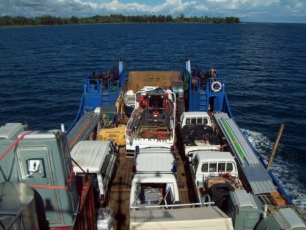 The barge loaded with logistics gear for the clearance project
