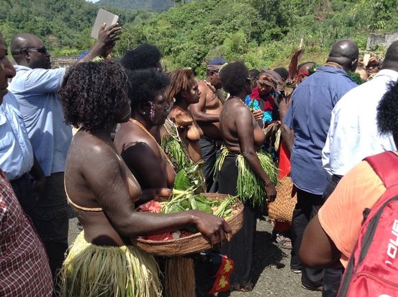 Pictured are Panguna women who welcomed the Prime Minister and his delegation to Panguna last week