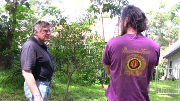 Dan & Johannes talking outside his house