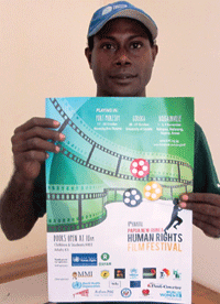 ARAWA Haus Stori (public library) will host the PNG Human Rights Film Festival scheduled next week weekend on the 9th November, 2013. The film festival will showcase and gender equality, violence against women and child abuse amongst others. It will be a form of awareness to the public on the effects of these issues and how they are crippling the communities and family units in Bougainville and PNG as a whole. Pictured is Allan Gioni of Arawa Stori Haus with the poster promoting the PNG Human Rights Film Festival that will be showcased in Arawa and other provinces in the country.
