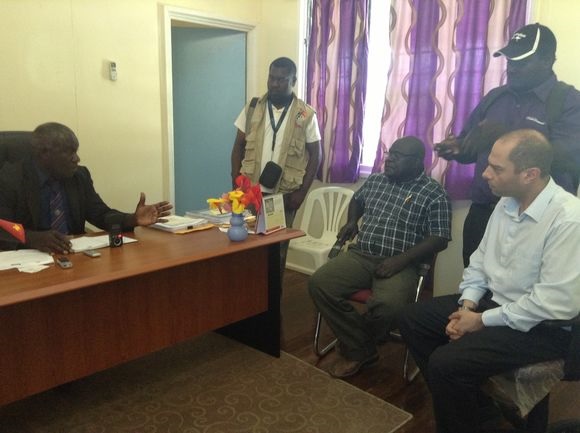 Pictured is a Meeting with the Chief Secretary and Works and PNG POWER team at Malasang this morning.