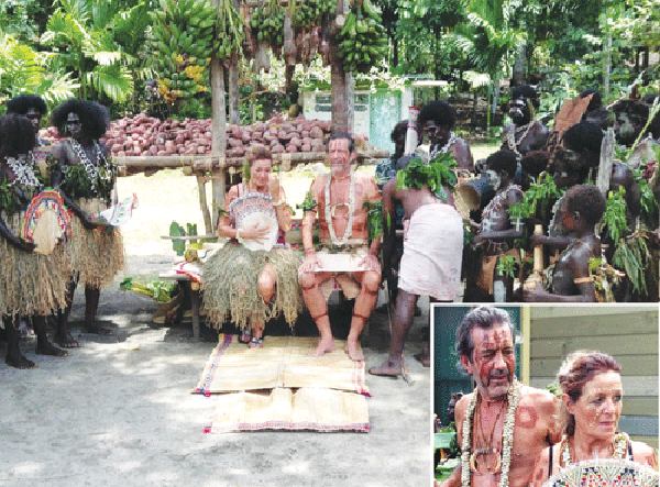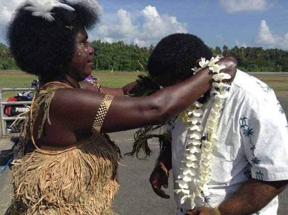 Picture of GLYN TOVIRIKA Being dressed into Traditional Attire for the ceremony'